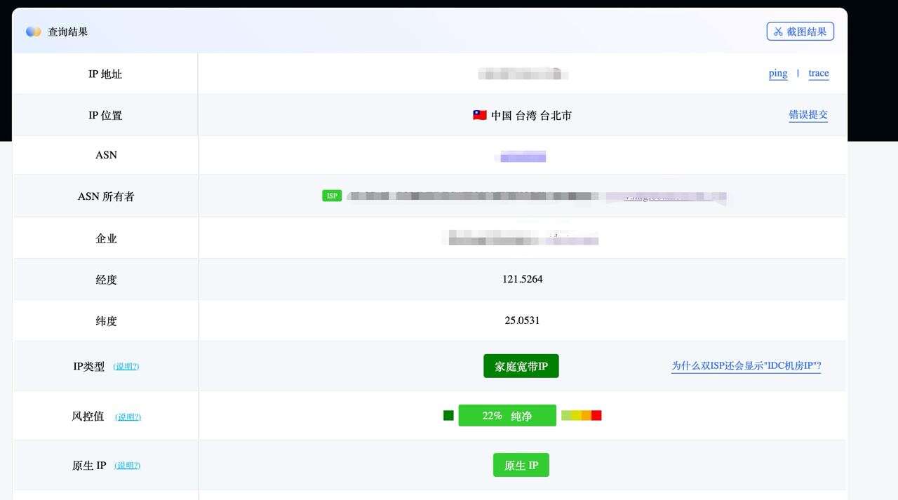 全新台湾地区纯净原生住宅IP段,含大陆优化线路,部分地区和宽带直连丝滑,全新IP段,IP纯净,Tiktok运营数据好, 解锁Claude Code, 流媒体全解锁。解锁动画疯。IP纯净,支持台区Tiktok, Chatgpt, FB营销,WHATSAPP营销,亚马逊电商,Netflix, DISNEY , 动画疯等。支持安装Windows。