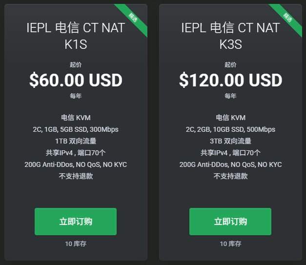 NiiHost推出少量的IEPL年付优惠套餐,仅限电信线路,有需要的朋友、用户可以从速购买,售完即止。