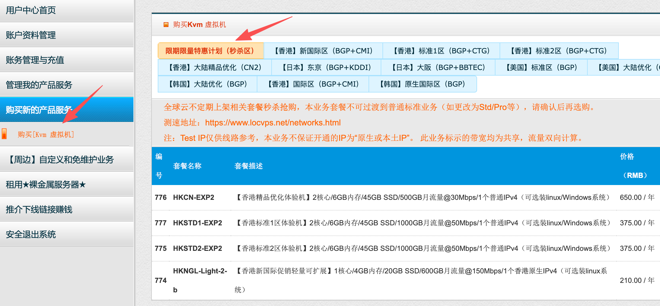 购买路径:客户中心 => 购买[KVM 虚拟机] => 限期限量特惠计划(秒杀区)
